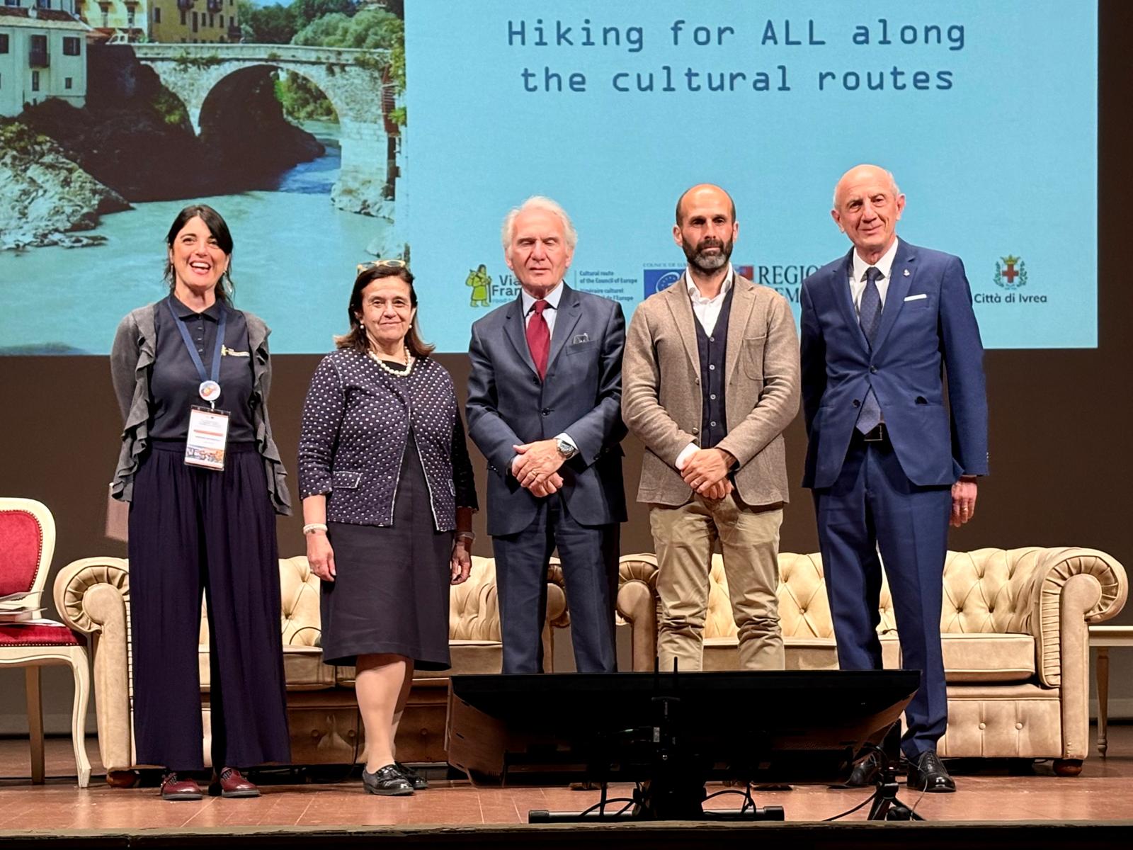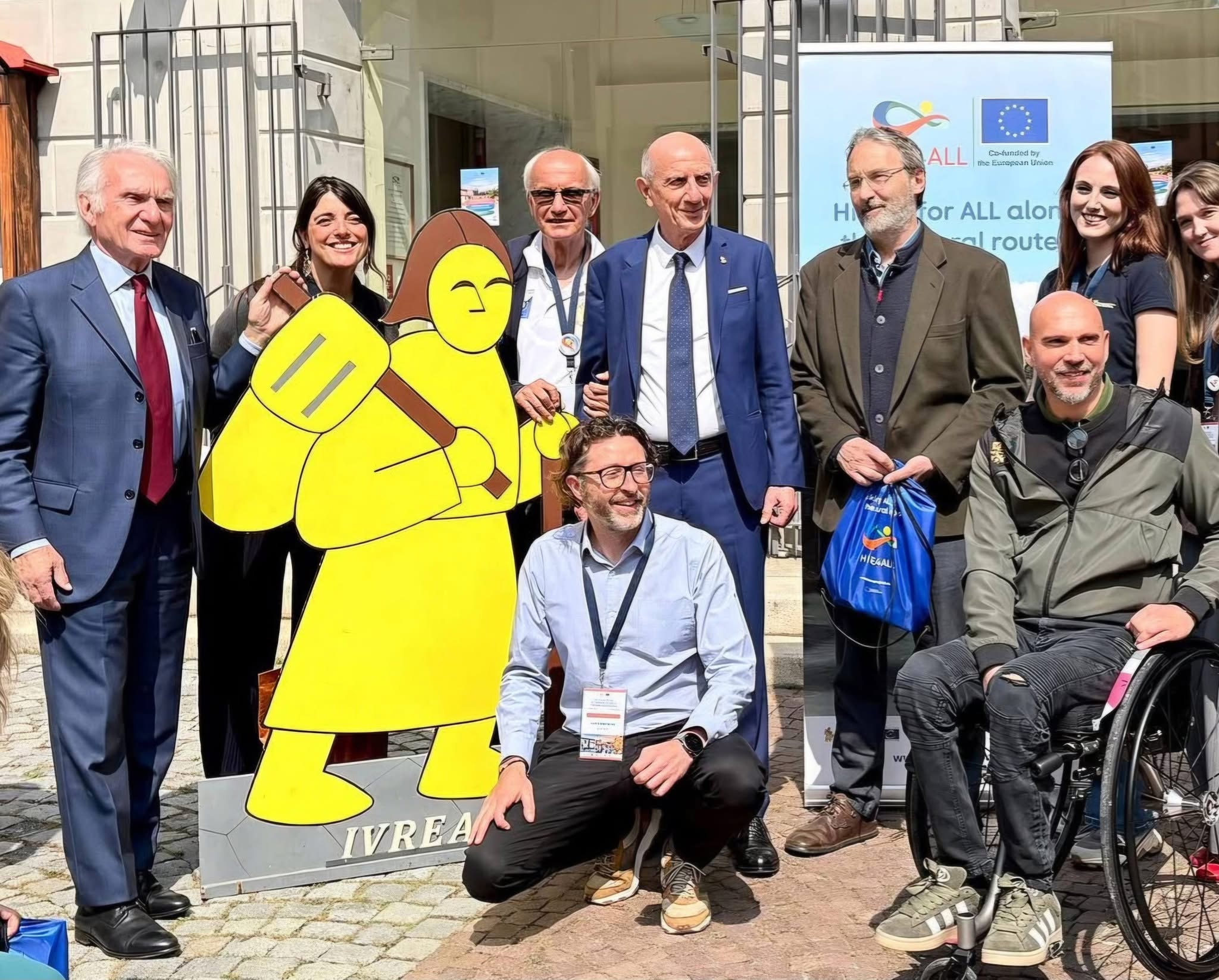 9:30 am – 12:30 pm: Workshop “Via Francigena: Walking Towards Accessible Tourism” at Teatro Giacosa (Piazza Teatro 1, 10015 Ivrea). The workshop will offer a moment of discussion and inspiration, opened by institutional greetings and enriched by the testimonies of individuals who have experienced the journey firsthand. Speakers will include coach and athlete Andrea De Vicenzi, Dario Sorgato of Noisy Vision on the topic of visual disability and inclusive perception, and Luca Paiardi and Danilo Ragona of B-free on the Via Francigena for All experience. An opportunity to reflect together on inclusion, youth, and the value of slow travel.